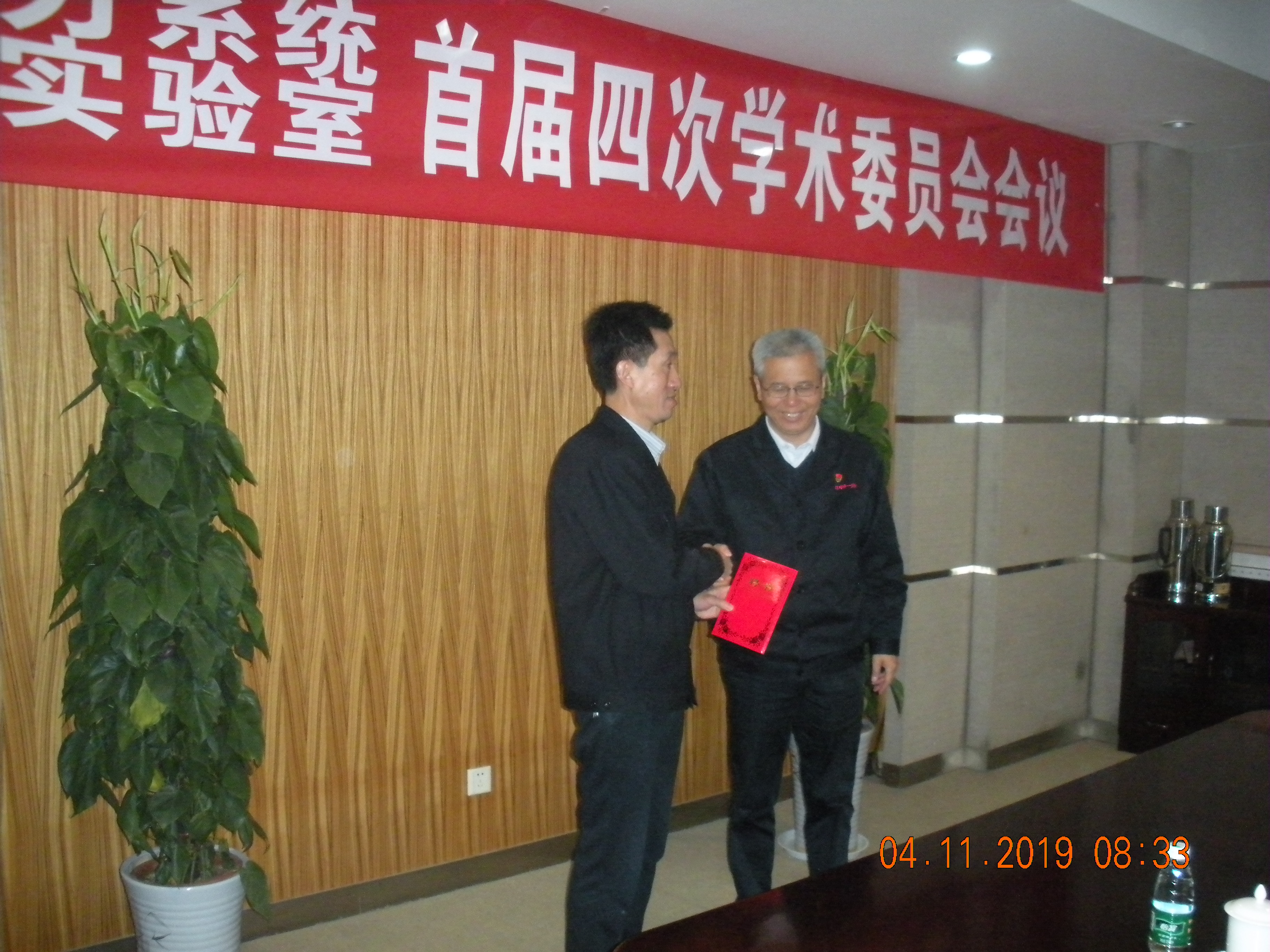 首届四次学委会会议现场 黎董事长给赵一荣颁发实验室副主任聘任证书 陈学庚院士做学术报告